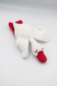 Biało-czerwony Bocian, ręcznie zrobiony z włóczki na szydełku