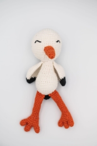 Biało-pomarańczowy Bocian, ręcznie zrobiony z włóczki na szydełku