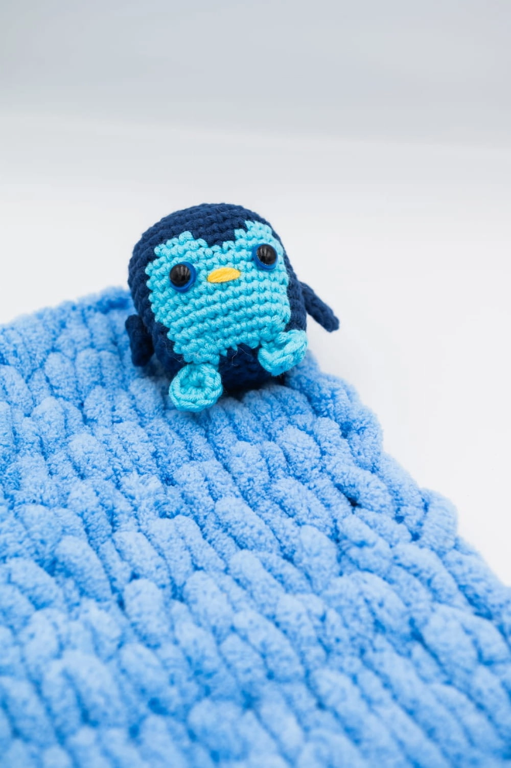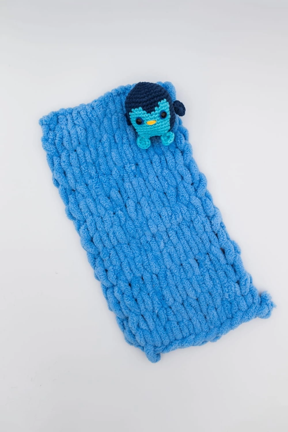 Blue Waddle - kocyk dekoracyjny z włóczki / pingwin, handmade