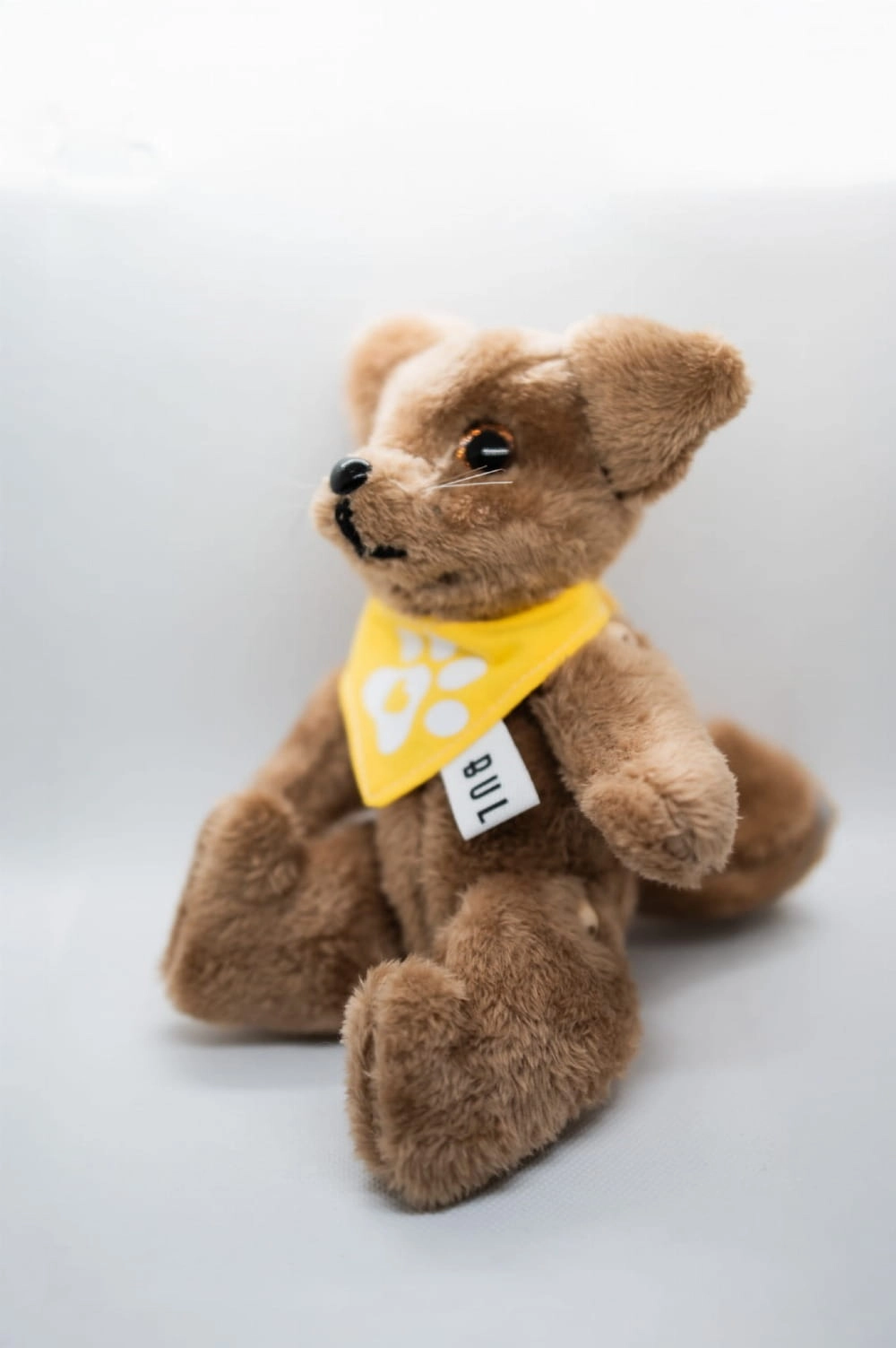 Ciepły, jednolicie brązowy pupil z radosną żółtą chustką. Subtelny, a jednocześnie pełen charakteru akcent do każdej przestrzeni.