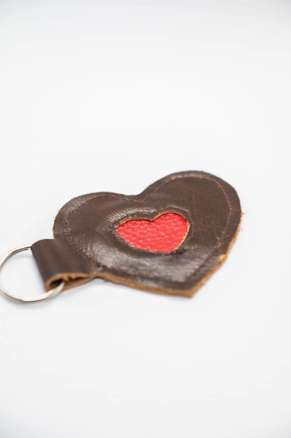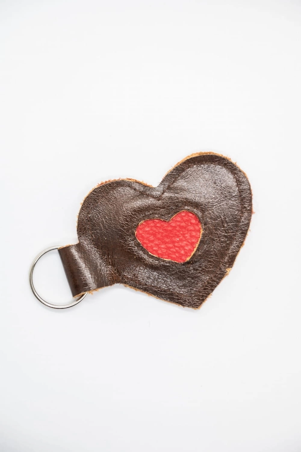 Brelok Serce – brązowy z czerwonym środkiem, ręcznie szyty
