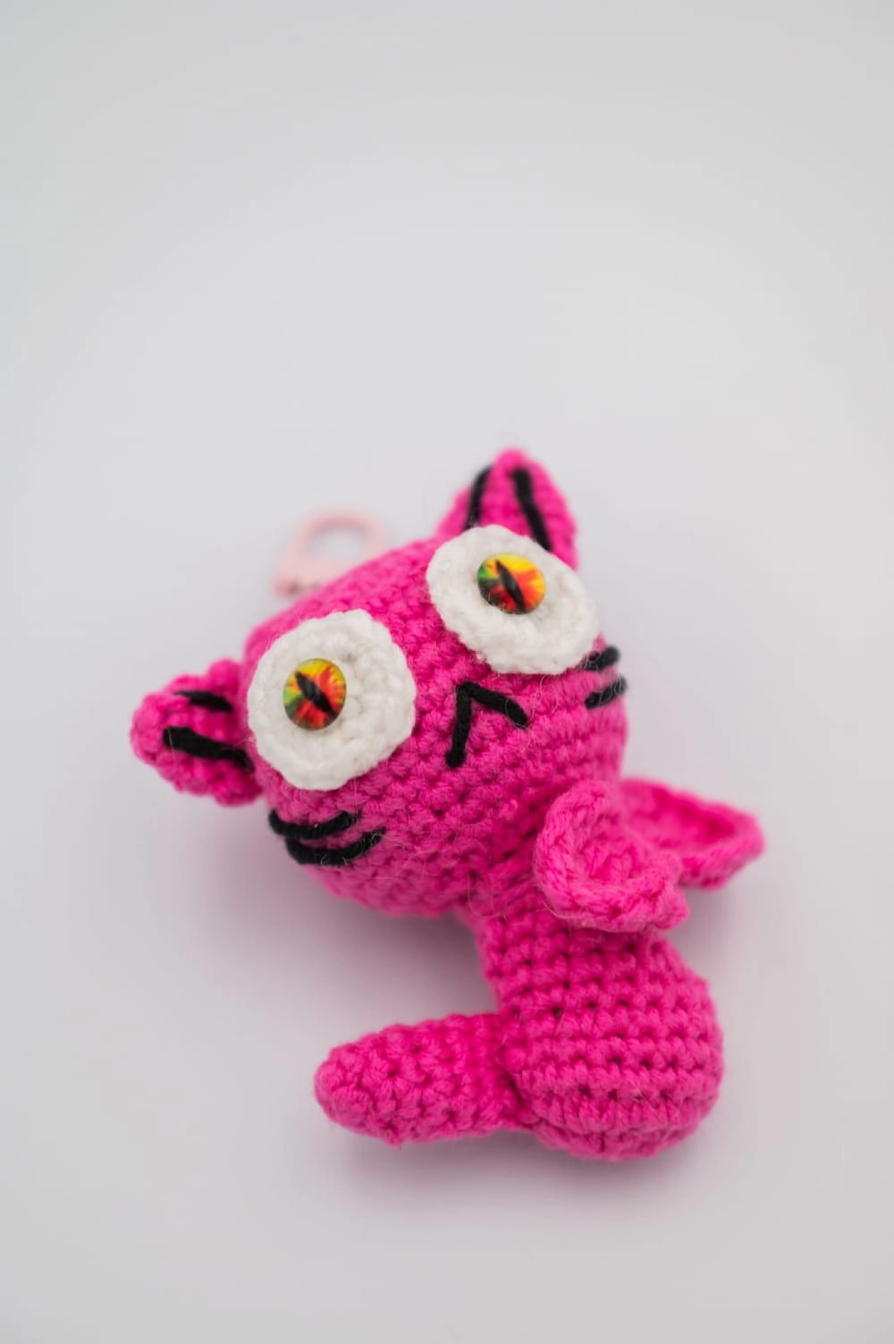 Brelok kotek szydełkowy ręcznie robiony z włóczki, różowy
