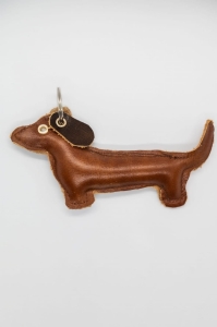 Brelok skórzany Jamnik – ręcznie szyty, brązowy