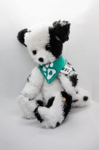 Ten wyjątkowy pupil wyróżnia się kontrastowym, czarno-białym umaszczeniem w nieregularne cętki, które nadają mu naturalny i niepowtarzalny wygląd. Jego lekko włochata, puszysta struktura sprawia, że prezentuje się niezwykle przytulnie i przyciąga uwagę swoją teksturą.