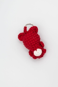 Ręcznie wykonany w Polsce brelok – czerwony miś z białym sercem, wykonany na szydełku z włóczki. Stylowy dodatek do kluczy, torby lub plecaka.