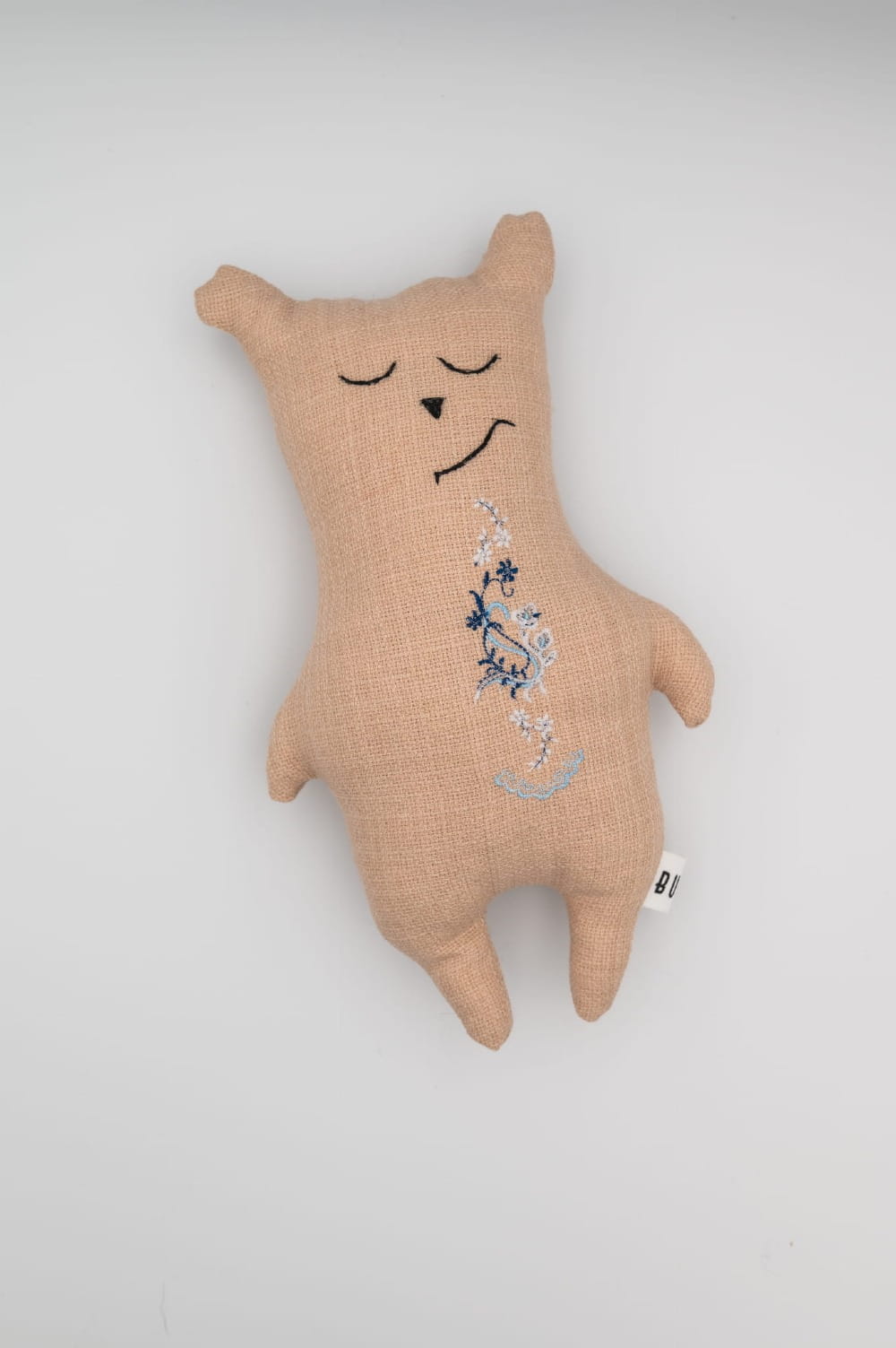 To rękodzieło zostało starannie wykonane z naturalnej surowej bawełny, co nadaje mu przyjemną w dotyku i ekologiczną formę. Każdy egzemplarz ozdobiony jest delikatnym haftem, który podkreśla jego indywidualny charakter. Produkt szyty ręcznie w Polsce świetnie sprawdzi się jako dekoracja wnętrza, wyjątkowy upominek lub element kolekcji. Dostępny w kilku wzorach, pozwalając wybrać idealny egzemplarz dopasowany do stylu i gustu.
