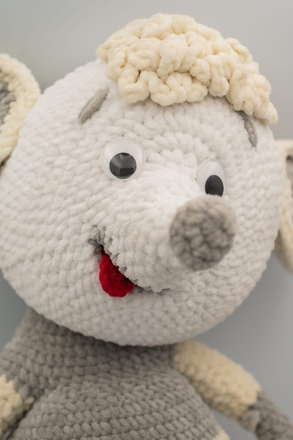 Duża mysz szydełkowa – szaro-biało-beżowa, ręcznie zrobiona z włóczki na szydełku