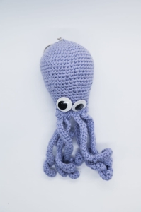 Fioletowa Ośmiornica, brelok/zawieszka, ręcznie zrobiony z włóczki na szydełku