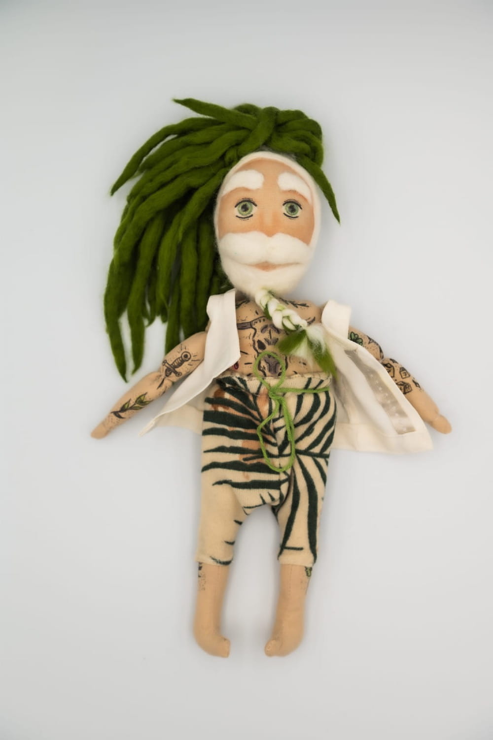 Zielone dredy, tatuaże i chill w oczach. Postać pełna natury, spokoju i stylu. Ręcznie szyta, wyjątkowa i totalnie nie do podrobienia.