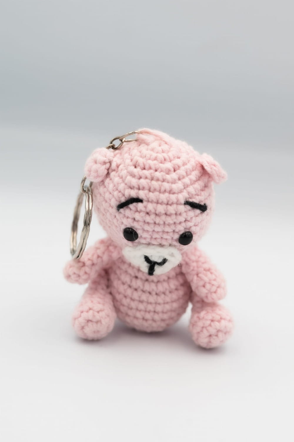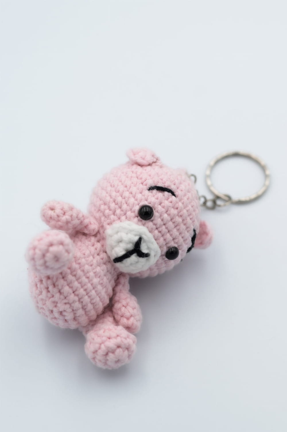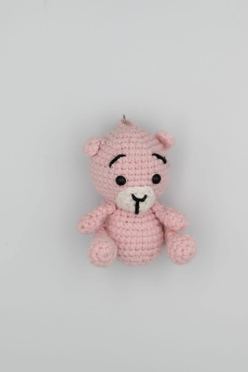 Ręcznie wykonany w Polsce brelok – jasnoróżowy miś, wykonany na szydełku z włóczki. Subtelny dodatek do kluczy, torby lub plecaka.