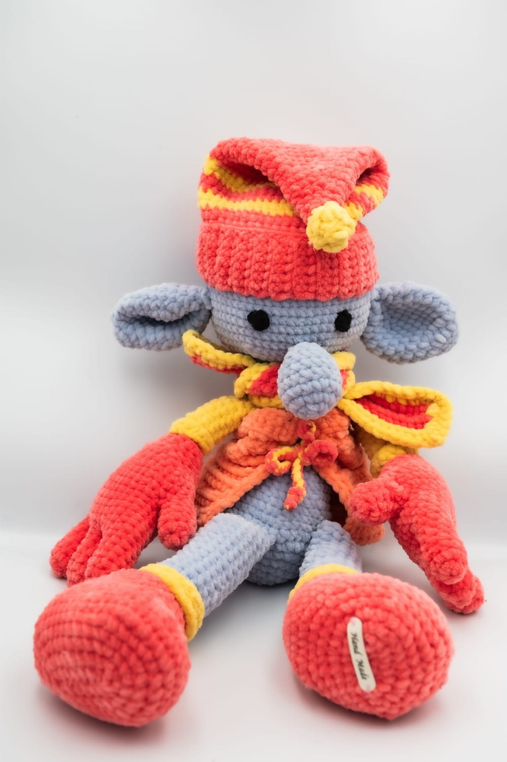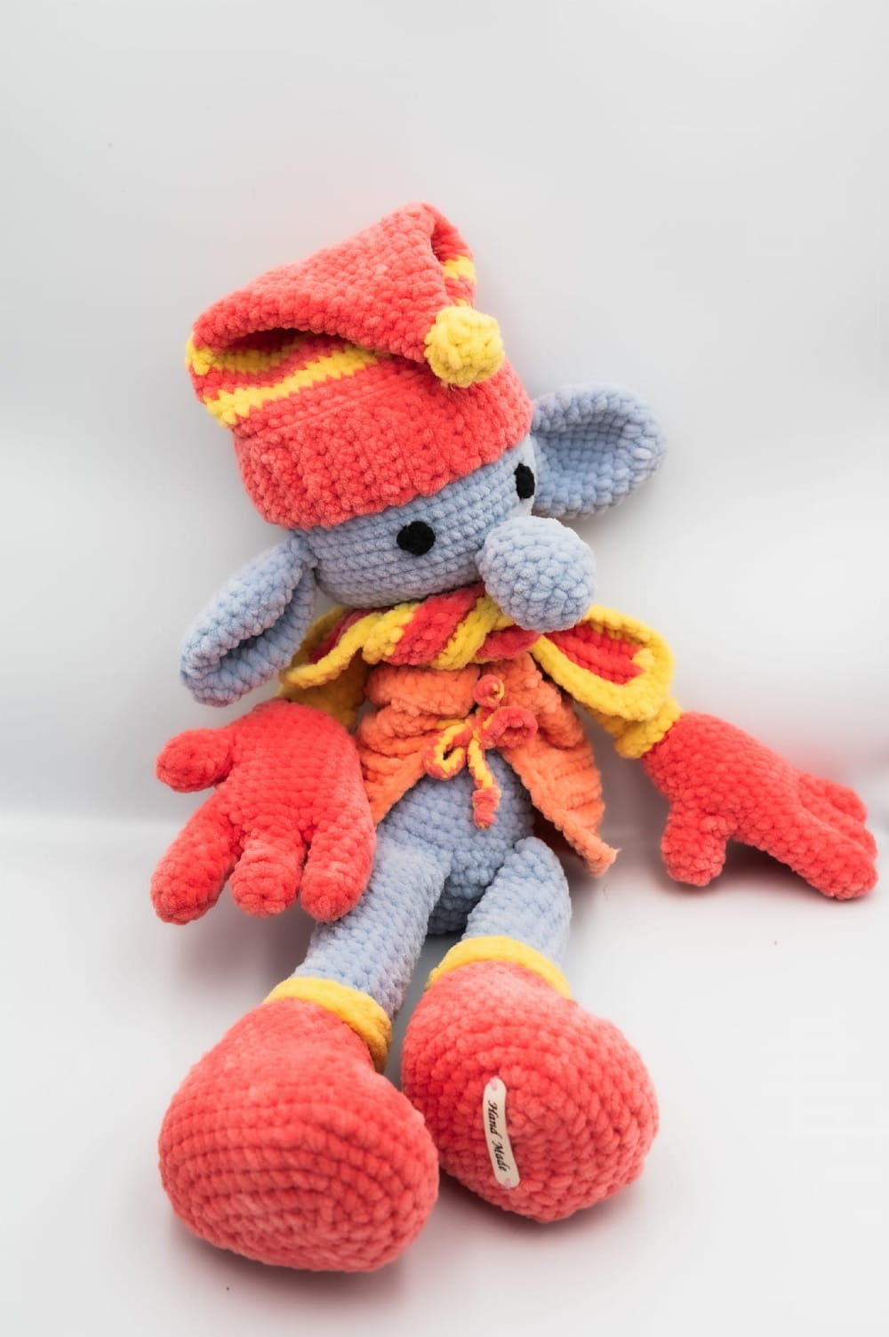 Kolorowy Ogromny kolorowy krasnal, ręcznie zrobiony z włóczki na szydełku