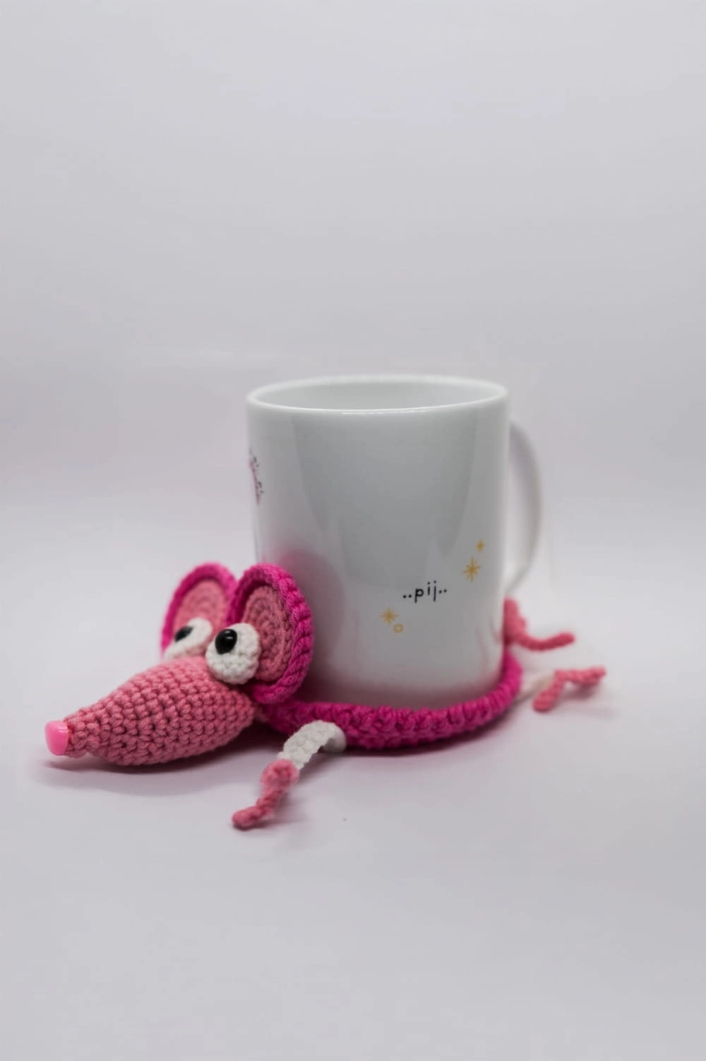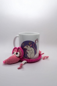 Kubek ze szczurkiem „pij” + szydełkowa podkładka – zestaw