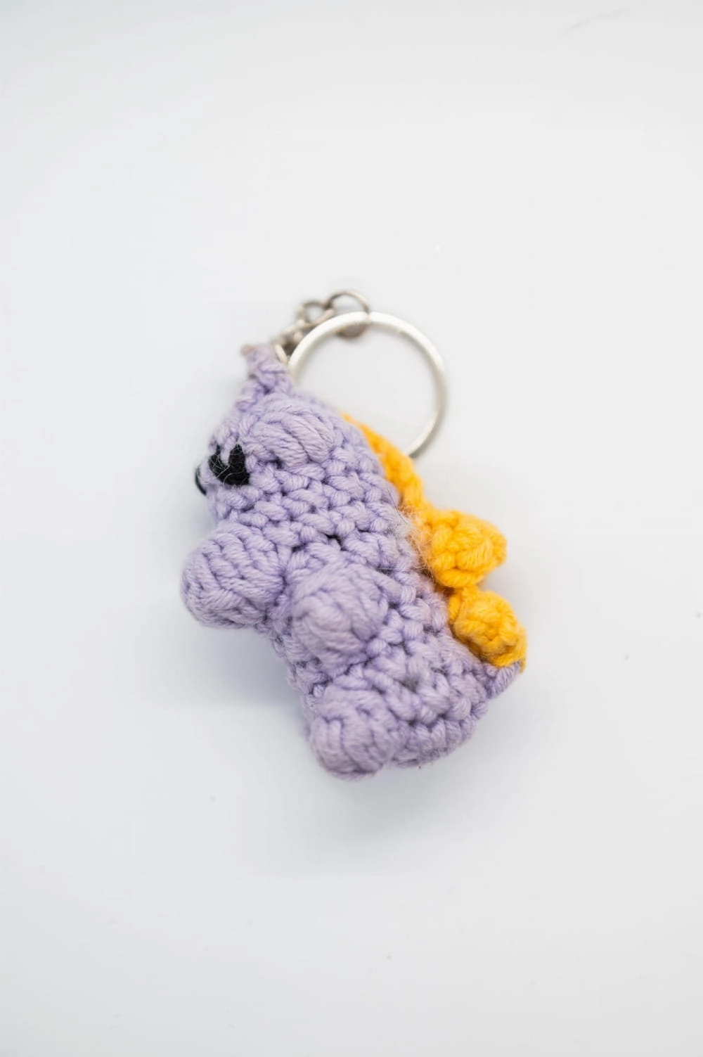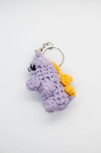 Ten szydełkowany brelok przedstawiający fioletowego dinozaura został wykonany ręcznie w Polsce, z dbałością o detale i proporcje. Jego wyrazisty kolor i nietypowy kształt wprowadzają wesoły akcent do codziennych dodatków.