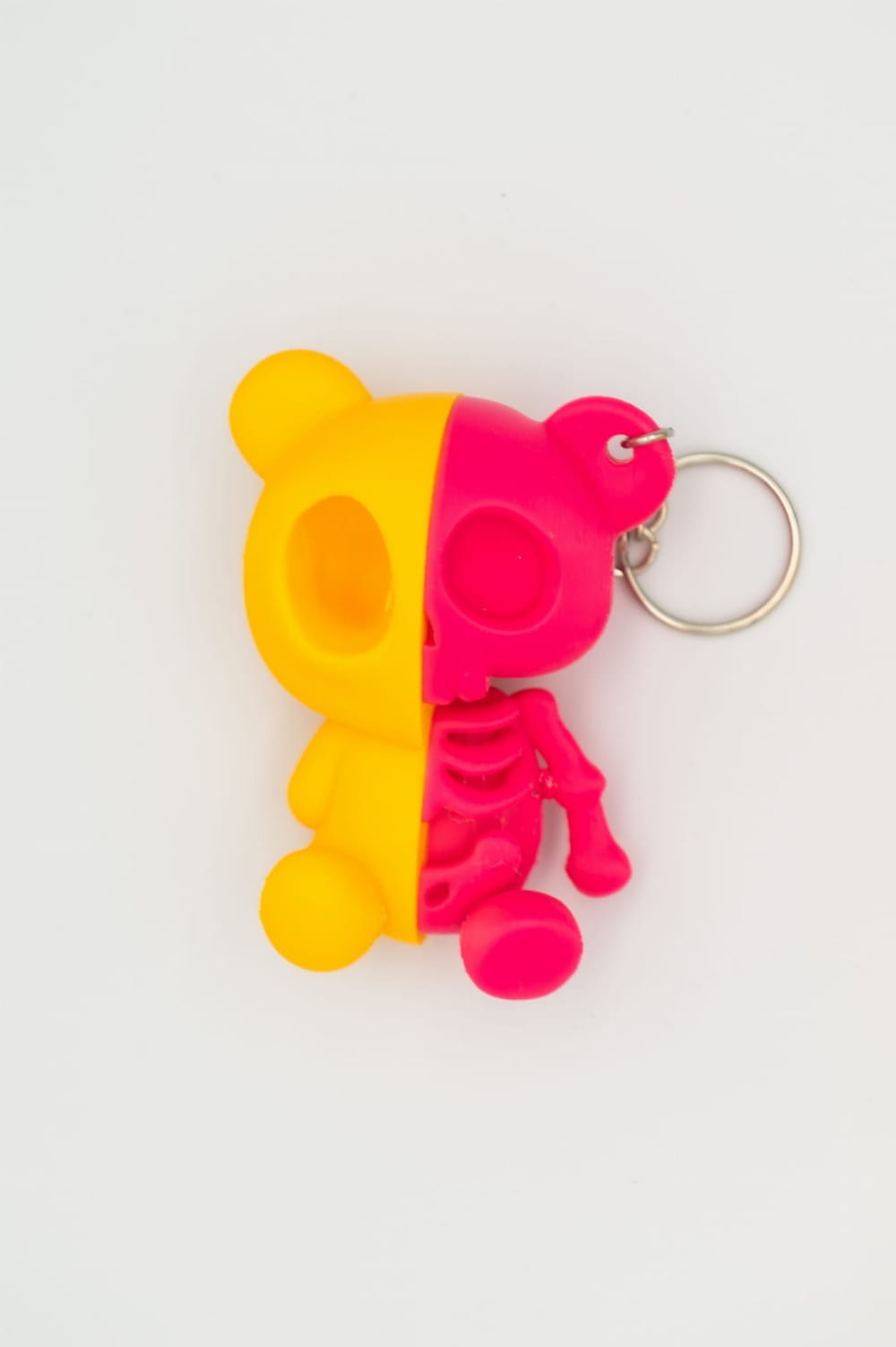 Duży brelok w formie połączenia misia z jego szkieletem to oryginalny gadżet, który wyróżnia się nietypowym designem. Część misia w połączeniu z widocznym szkieletem tworzy intrygujący efekt wizualny, który przyciąga wzrok.
