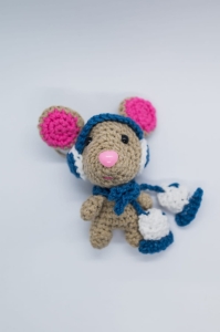 Mysz z łyżwami, brelok/zawieszka, ręcznie zrobiony z włóczki na szydełku