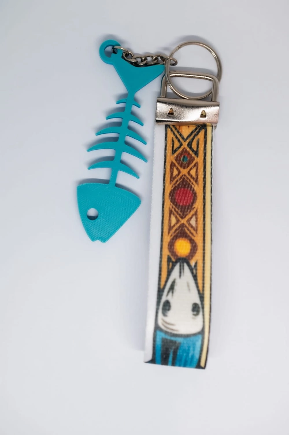 Oryginalny brelok z figurką szkieletu ryby wykonaną w 3D i paskiem z motywem oldschoolowej ryby. Nietuzinkowy detal dla miłośników wyjątkowych dodatków.