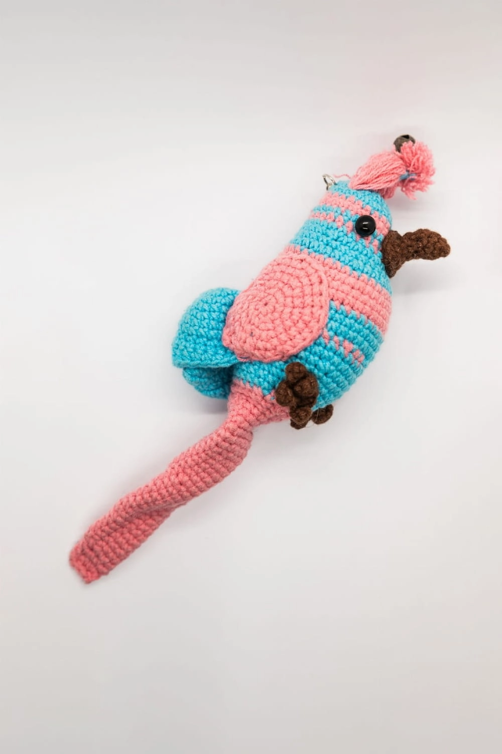 Szydełkowany brelok w kształcie niebiesko-różowej papugi to energetyczny dodatek, który od razu zwraca uwagę. Powstaje ręcznie w Polsce, w małej pracowni, gdzie każdy element jest starannie dopracowany.