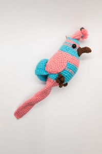 Niebiesko-różowa Papuga, brelok/zawieszka, ręcznie zrobiony z włóczki na szydełku