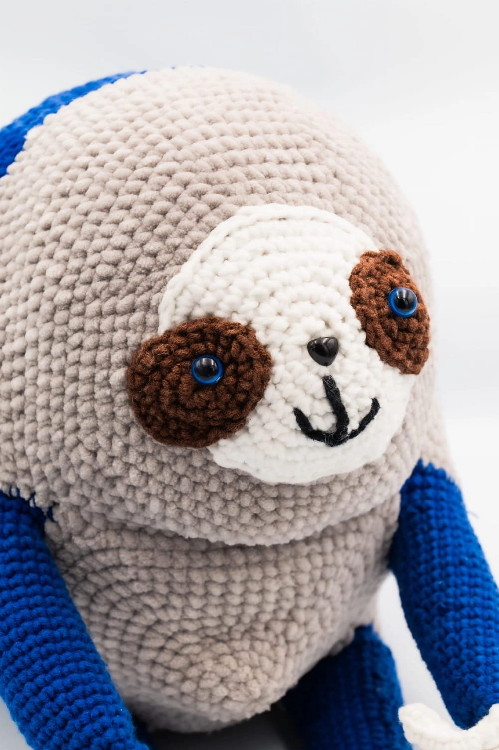 Okrągły leniwiec, niebiesko-szary, ręcznie zrobiony z włóczki na szydełku