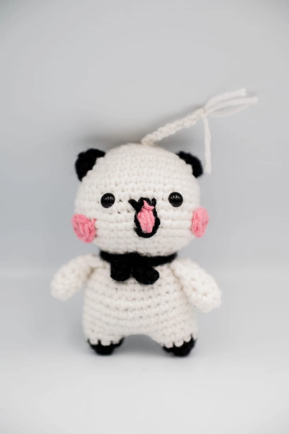 Ręcznie szyta panda w formie zawieszki. Uroczy, minimalistyczny dodatek z charakterem – idealny do kluczy, torby lub jako drobny upominek.