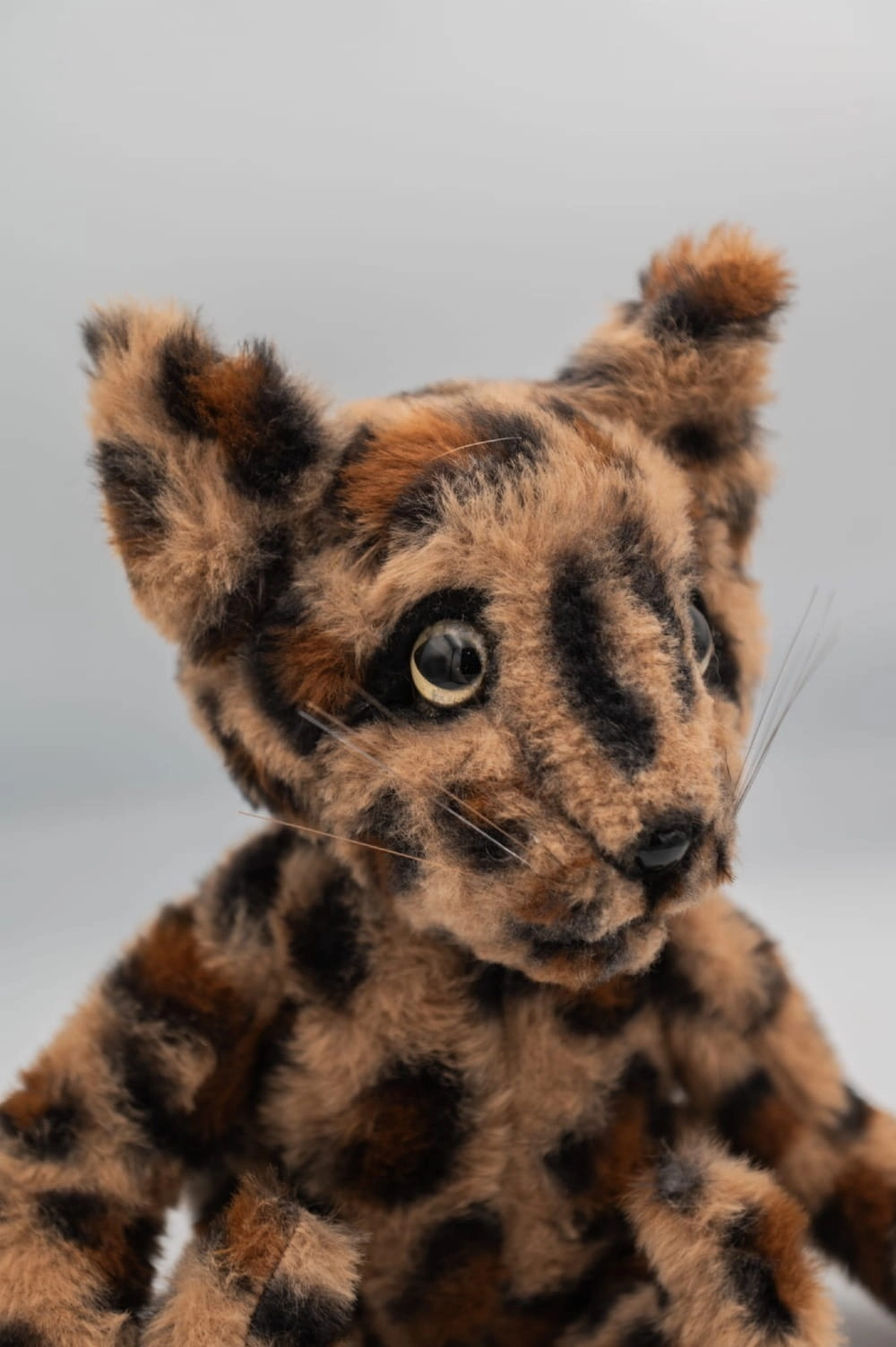 Pluszowy lampart figurka z ruchomymi łapami, rękodzieło