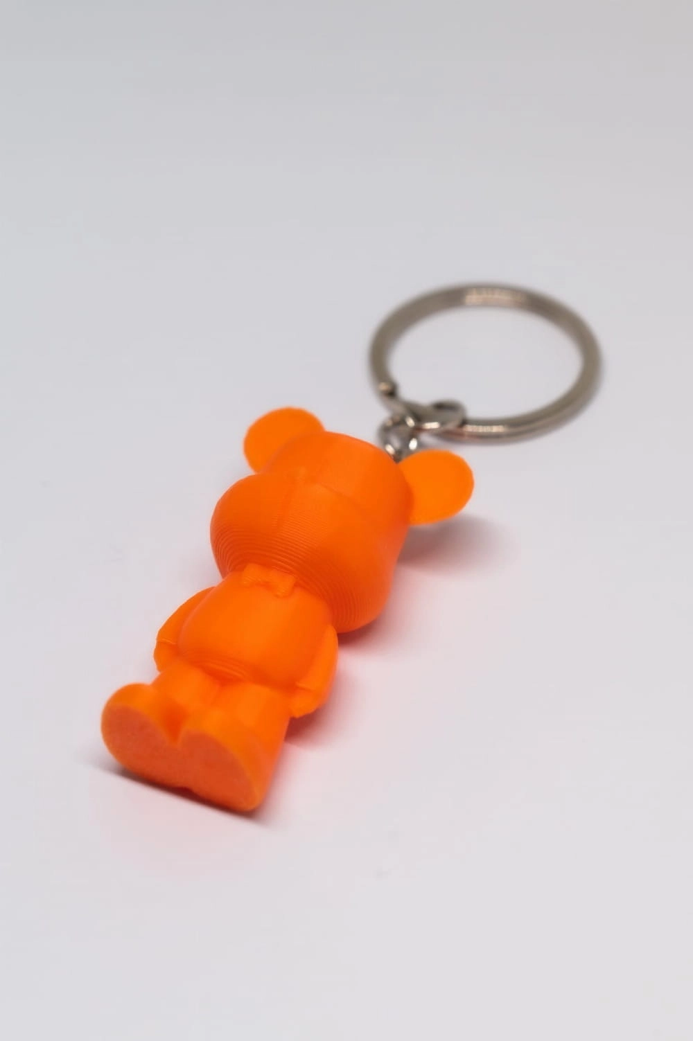 Pomarańczowy brelok w kształcie misia. Uroczy i praktyczny dodatek do kluczy, torby lub plecaka, który wyróżnia się kolorowym designem.