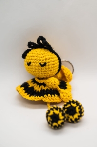Pszczoła, brelok/zawieszka, ręcznie zrobiony z włóczki na szydełku