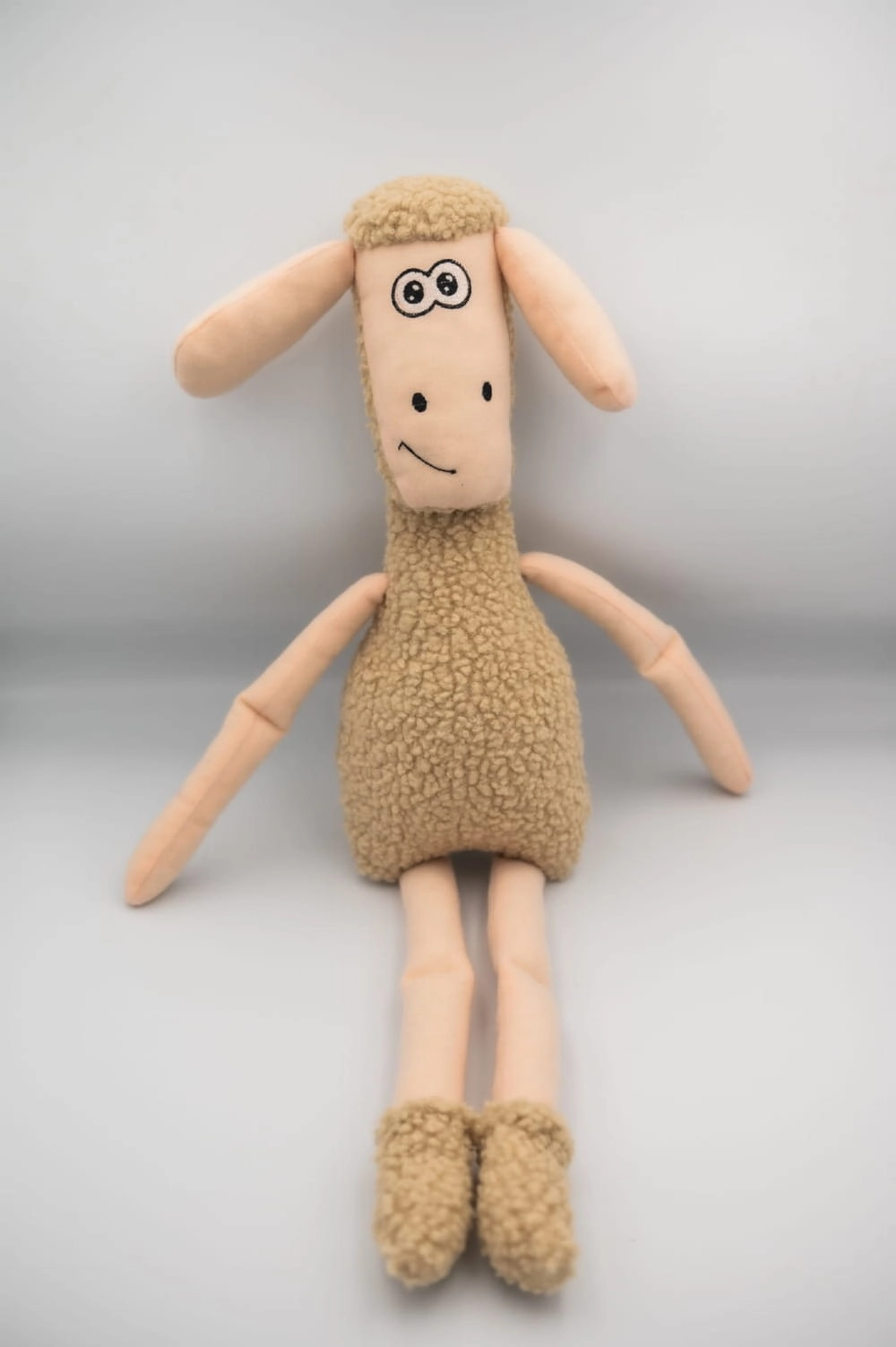 Urocza owieczka w naturalnych, beżowych odcieniach z miękkim, barankowym tułowiem. Starannie wykonana, idealna jako przytulny akcent dekoracyjny do wnętrza.