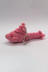 Ten szydełkowany brelok przedstawiający różową rybę został wykonany ręcznie w Polsce, z dbałością o detale. Jasny kolor i charakterystyczny kształt wprowadzają zabawny i przyjazny akcent do codziennych dodatków.