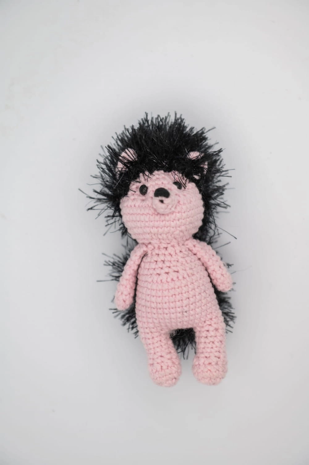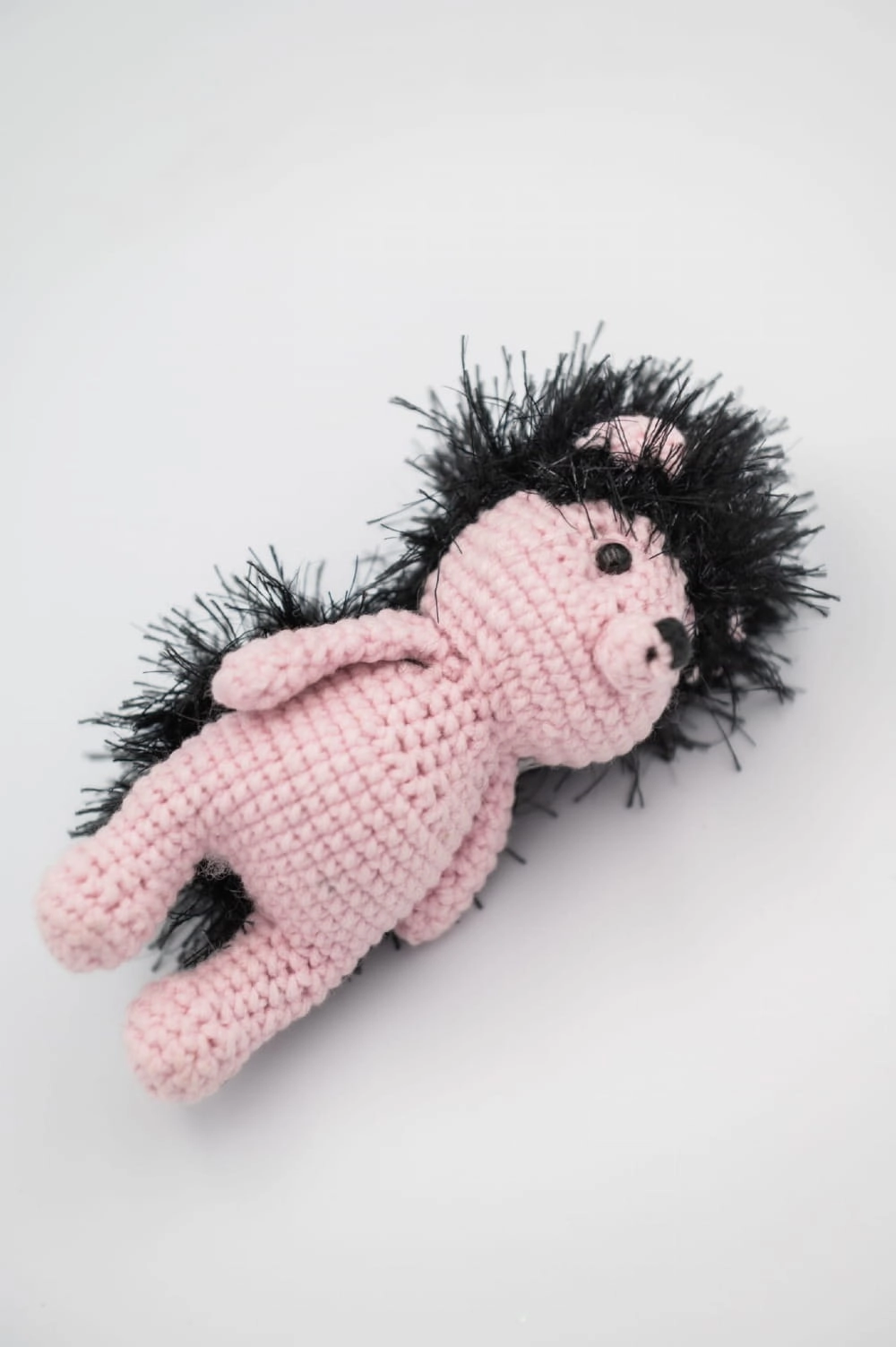 Różowo-czarny jeż to autorska dekoracja wykonana ręcznie w Polsce z włóczki. Klasyczna forma jeża została przełamana odważnym zestawieniem różu i czerni, dzięki czemu figurka wyróżnia się na tle tradycyjnych, naturalnych kolorystyk.