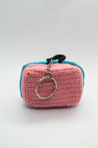 Ten szydełkowany brelok przedstawiający różowo-niebieską walizkę został wykonany ręcznie w Polsce z dbałością o każdy detal. Intensywne kolory i charakterystyczny kształt nadają codziennym dodatkom wyjątkowego, rękodzielniczego akcentu.