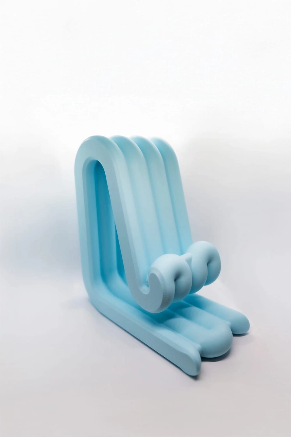 Minimalistyczny stojak na telefon lub tablet wykonany w technologii druku 3D z ekologicznego materiału PLA. Dzięki swojej prostej, przemyślanej konstrukcji zapewnia stabilne podparcie urządzenia bez potrzeby regulacji kąta nachylenia.