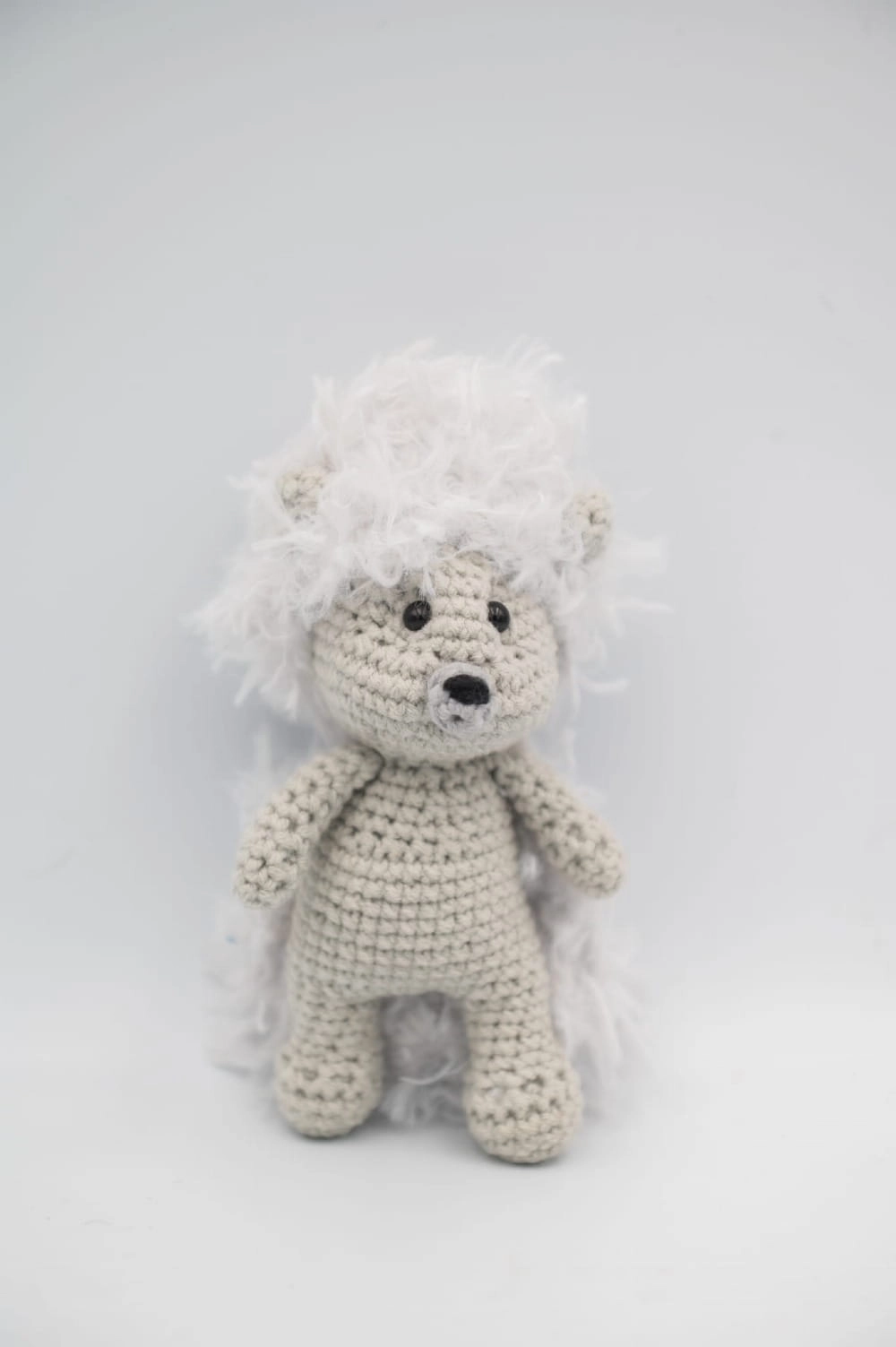 Szaro-biały jeż – ręcznie wykonana dekoracja z włóczki