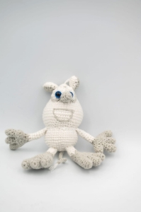 Szydełkowa postać wykonana ręcznie z dbałością o proporcje i detale. Neutralny biały kolor nadaje jej minimalistyczny, nowoczesny charakter.