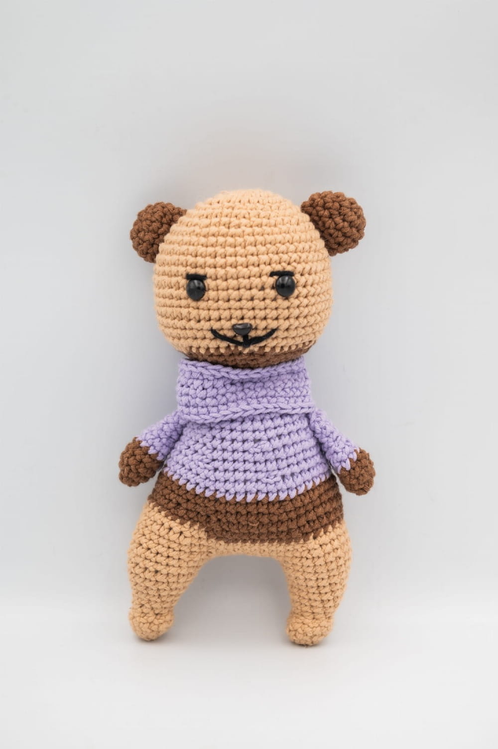 Ten szydełkowy miś został wykonany ręcznie z dbałością o detale i proporcje. Starannie dopracowana forma, subtelna kolorystyka oraz charakterystyczny sweterek nadają mu wyjątkowego uroku.