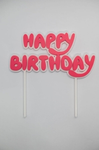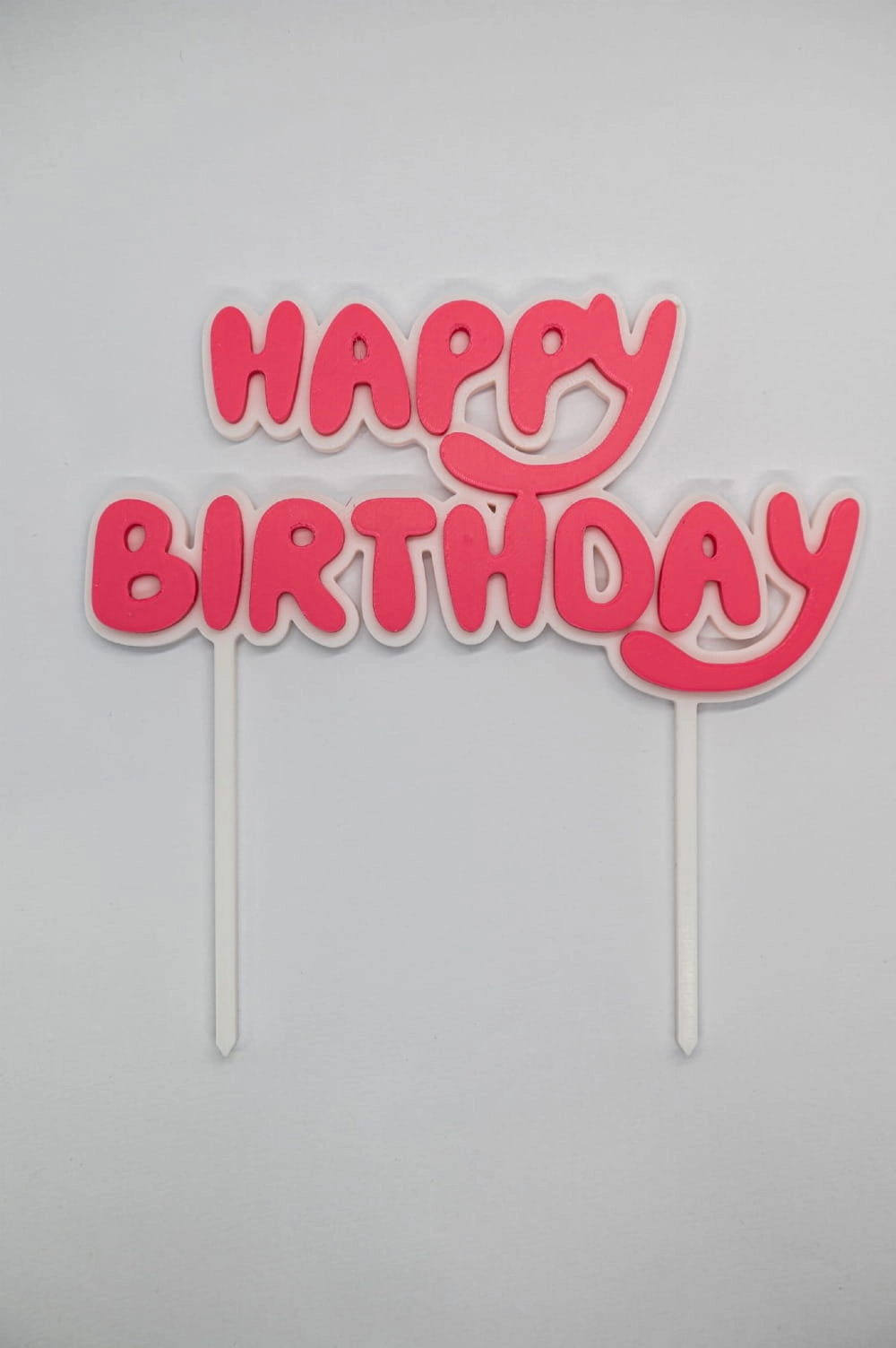 Różowy topper na tort Happy Birthday, wykonany z trwałego materiału PLA. Prosta i efektowna dekoracja, idealna na urodzinowe przyjęcie.