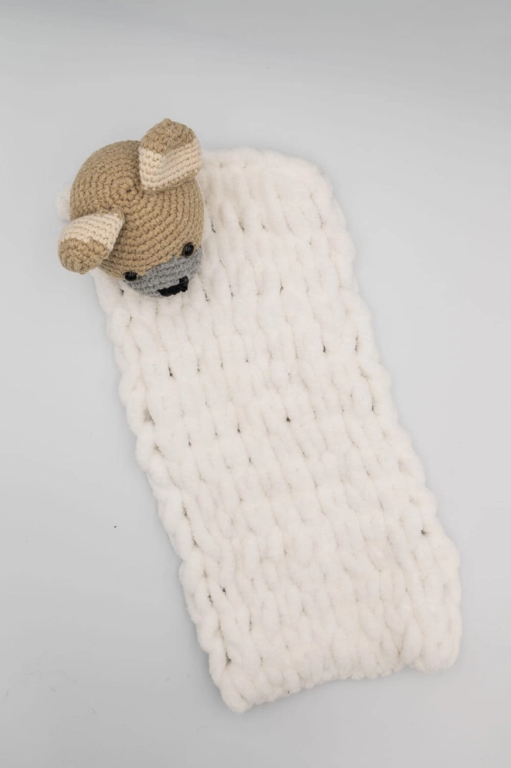 White Mellow - kocyk dekoracyjny z włóczki / miś, handmade