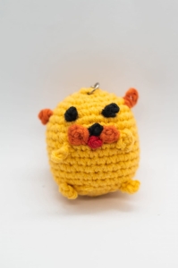 Żółty Pies, brelok/zawieszka, ręcznie zrobiony z włóczki na szydełku
